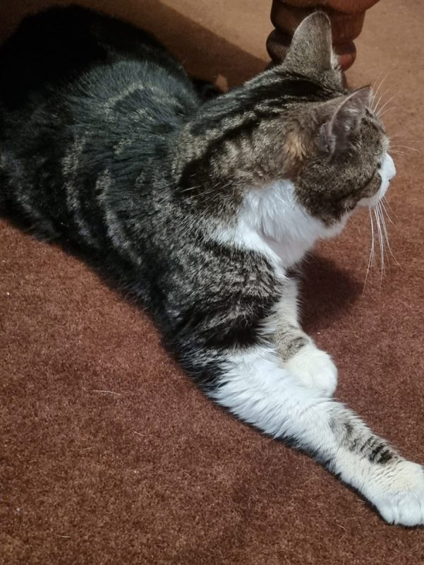 Jessie is a Friendly boy once you get used to him and he does have his little quirks that you will need to be aware of and be aware you will need to go steady to help him to work through his issues, he loves a fuss when he gets to know you as he will hiss at first but is not nasty he just prefers you to get closer down to his level he will then roll over for a chin rub and will purr and dribble as this just makes him soo happy.