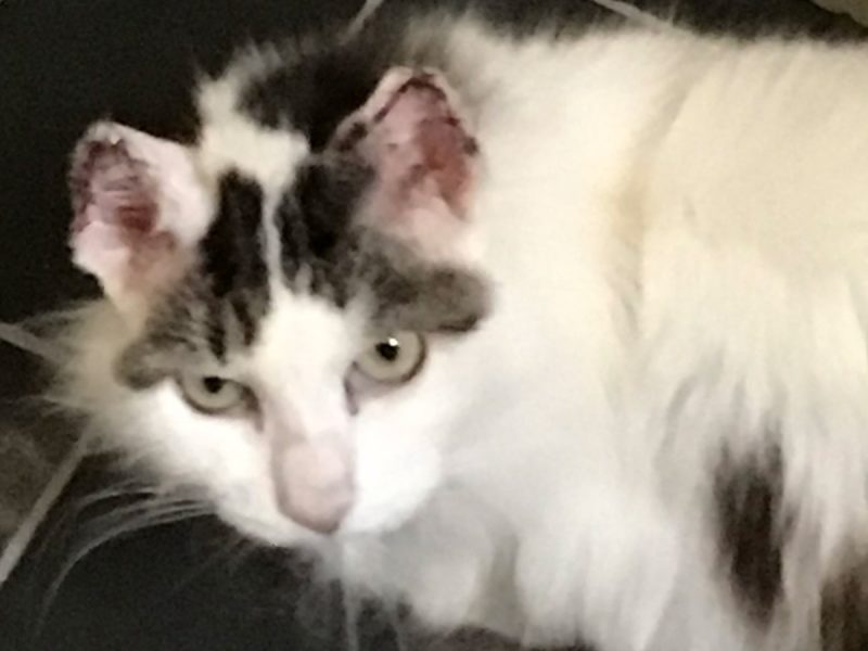 Aspen Is a sweet natured gentle older soul. She likes her own company but loves a good fuss. She eats well and love wet and dry food. She was found living in someone’s garden and we believe she was abandoned when her owner moved away. Since being in foster she has had dental treatment and she also had to have the top of her ears removed due to sun damage, so she has now got teddy bear ears. She would benefit a reasonably quiet household as she can still be a bit jumpy but seeing the progress she has made she will come round with patience. There has to be that special home out there where she can settle. Some photos are of her before her stitches came out.