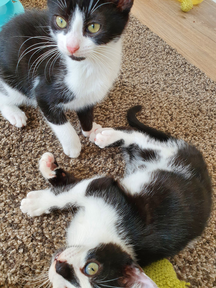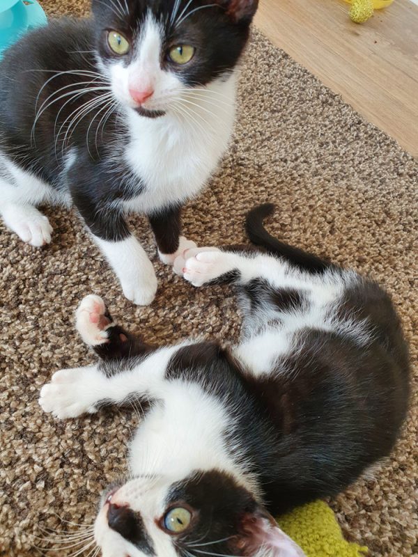 The siblings love a good run around and a tumble together, Belle being the instigator, she also loves chasing toys, jumping and running like a looney.