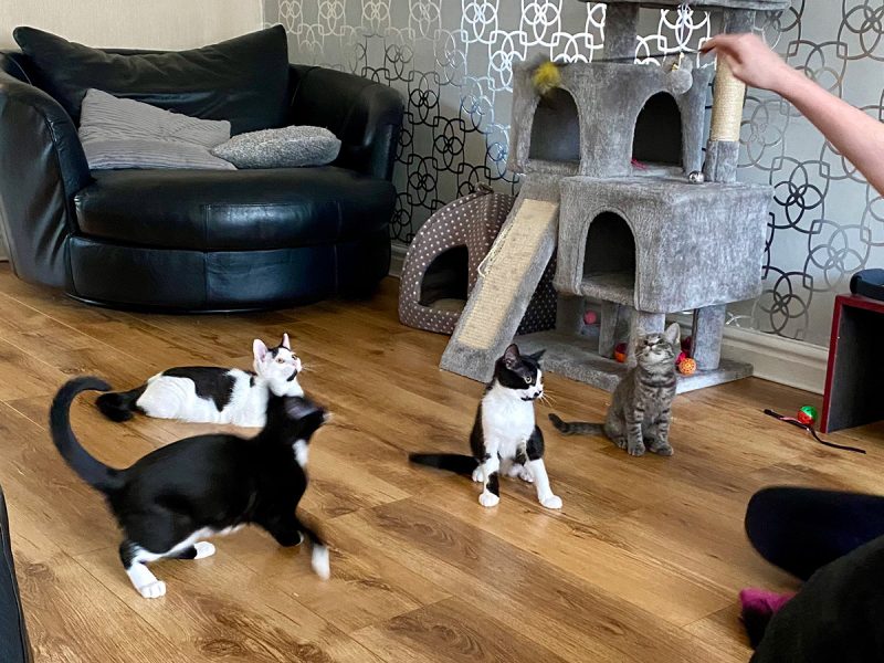 Cluedo & Ludo are lovely kittens. They are still a little nervous but very loving kittens. They love having a fuss and will come up to you to play. They purr all the time. They aren’t so happy to be picked up and held as much but are getting better every day. As they trust you they will show more and more affection.