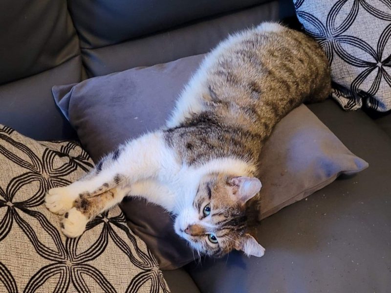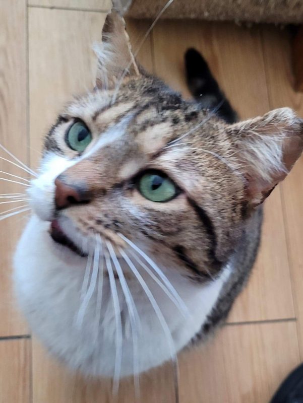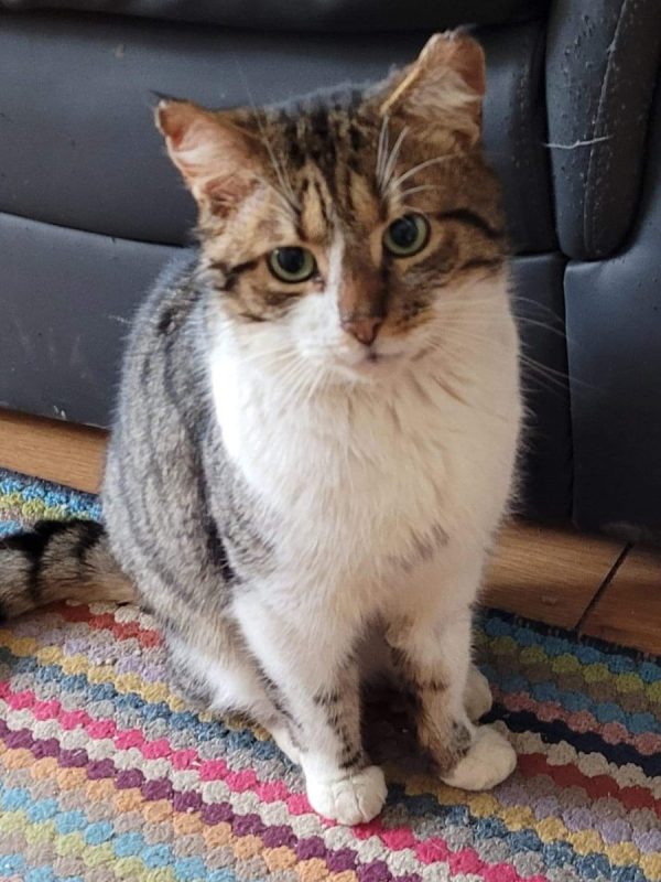Daniel is a big lad but he is stunning. He will take a while to come round as he was very nervous when he came to us. He’s obviously been in some arguments with other cats before he was rescued as he has torn ears which add to his character. He’s been no problem around us or other cats, he’s just a cat that wants a family. He loves treats and will stare at you when he thinks it’s time for some. He will really settle in his forever home and although he isn’t a lap cat at the moment he does like to curl up next to you.