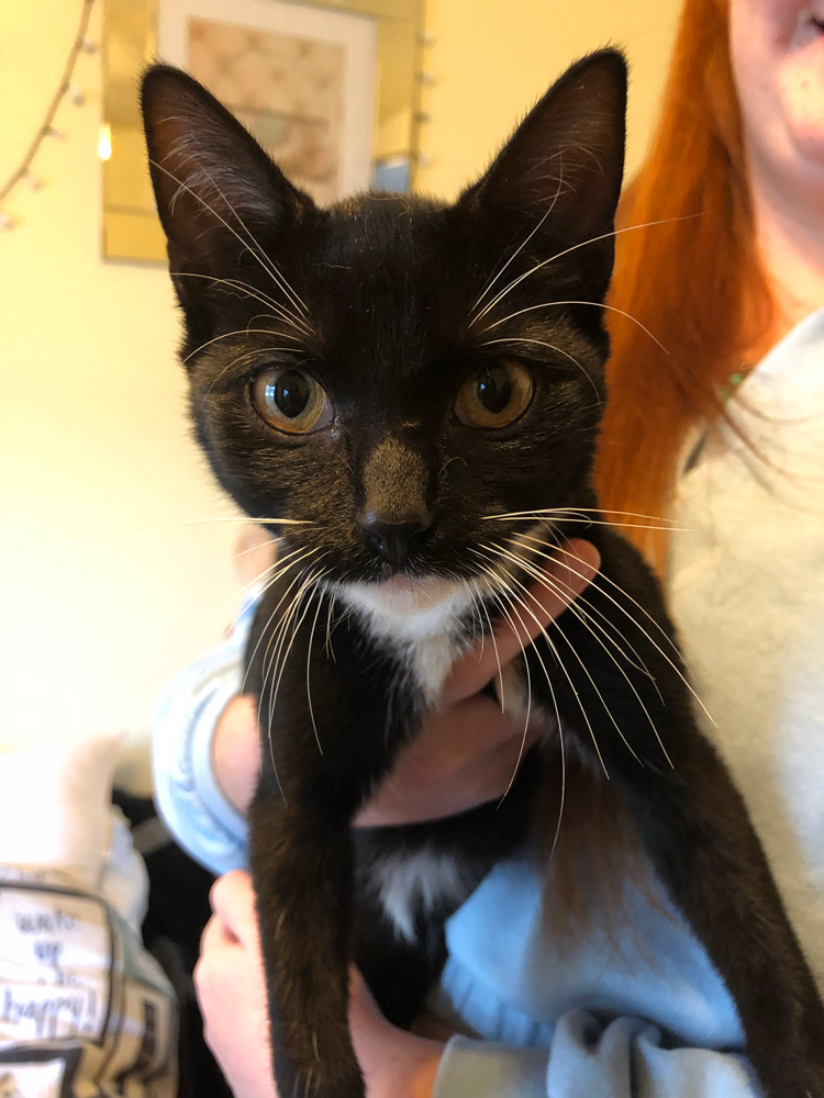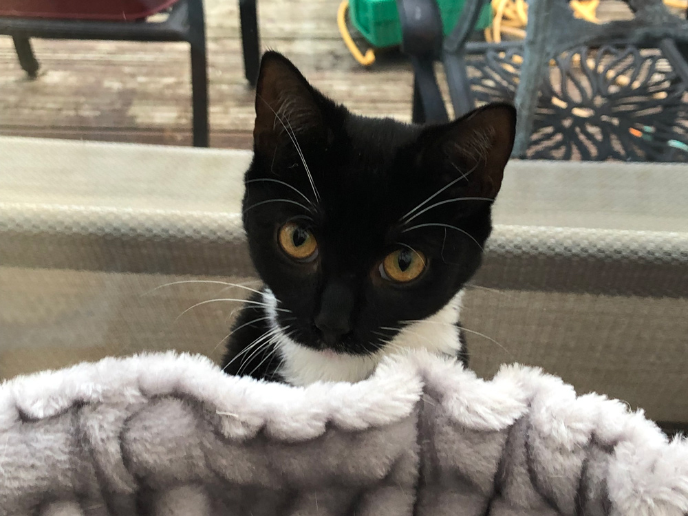 Darcy is a beautiful black and white tux girl with fantastic white whiskers. She has a fine bone structure and sleek silky coat. She is a small frame but is confident and loving. On a vist to the vet she sat calm and relaxed in her carrier unfazed. She loves to play and not bothered by our other cats infact our big white boy is quite enamoured with her and follows her around unusual for him as he is quite dominant. She really is pretty and would make a fantastic addition to any family. Great with kids she loves affection.