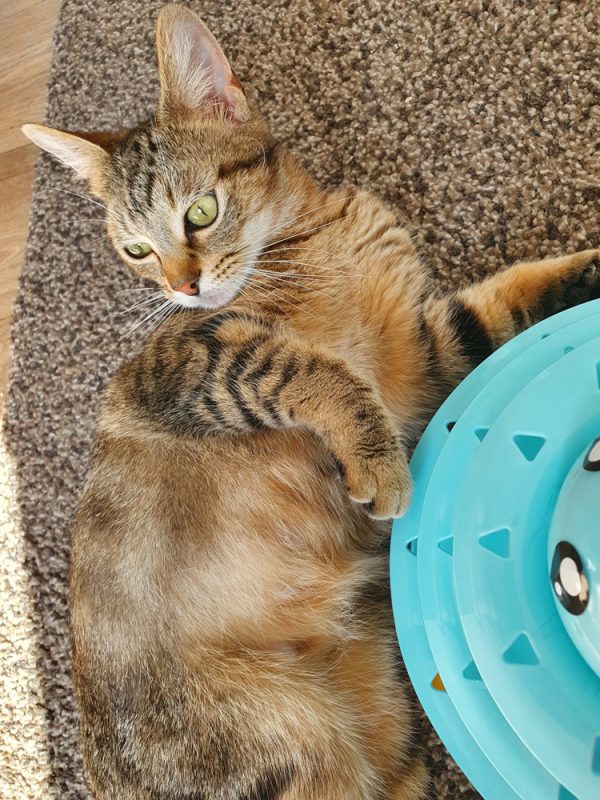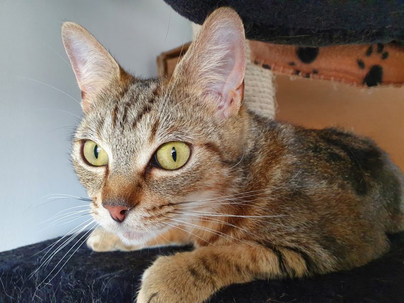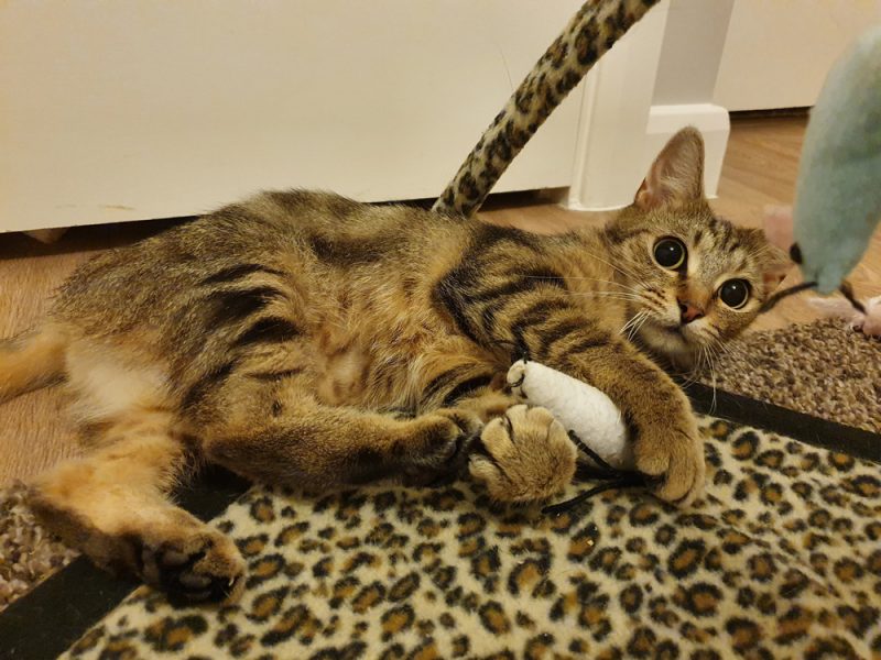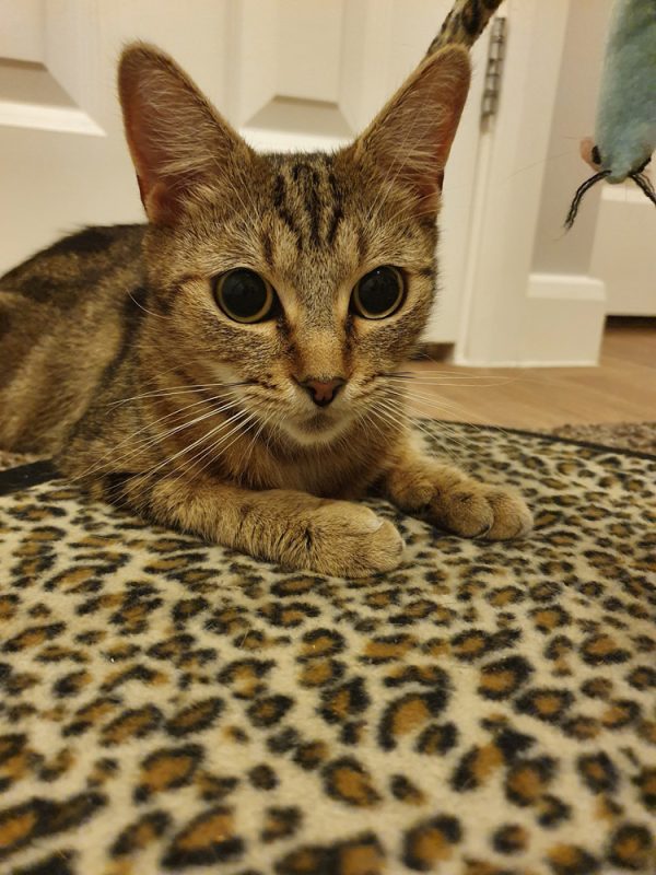 She is a real quirky character, she loves a fuss and loves to play, but goodness she likes to moan. She is very chatty and loves to express her dissatisfaction, along with beautiful spots on her legs, I would take a guess she has some Bengal in her 🤣