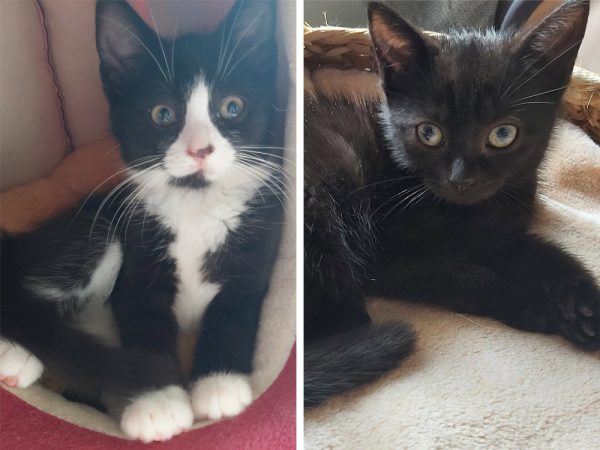 Pretty 10 week old sisters Elowen & Calla are looking for a home together. They have been hand reared since they were found in a garden at two weeks old. They had flu when they first came into rescue but they are now beautiful healthy kittens. They are extremely confident & affectionate & would be suitable for most households with children, another cat & possibly a cat friendly dog. Despite not being tested with dogs given their confidence they should be fine after careful introductions. They are currently being fostered in Brierley Hill DY5. If you are interested in offering these two sisters a home please read our adoption policy & fill in the adoption form. Thank you xx