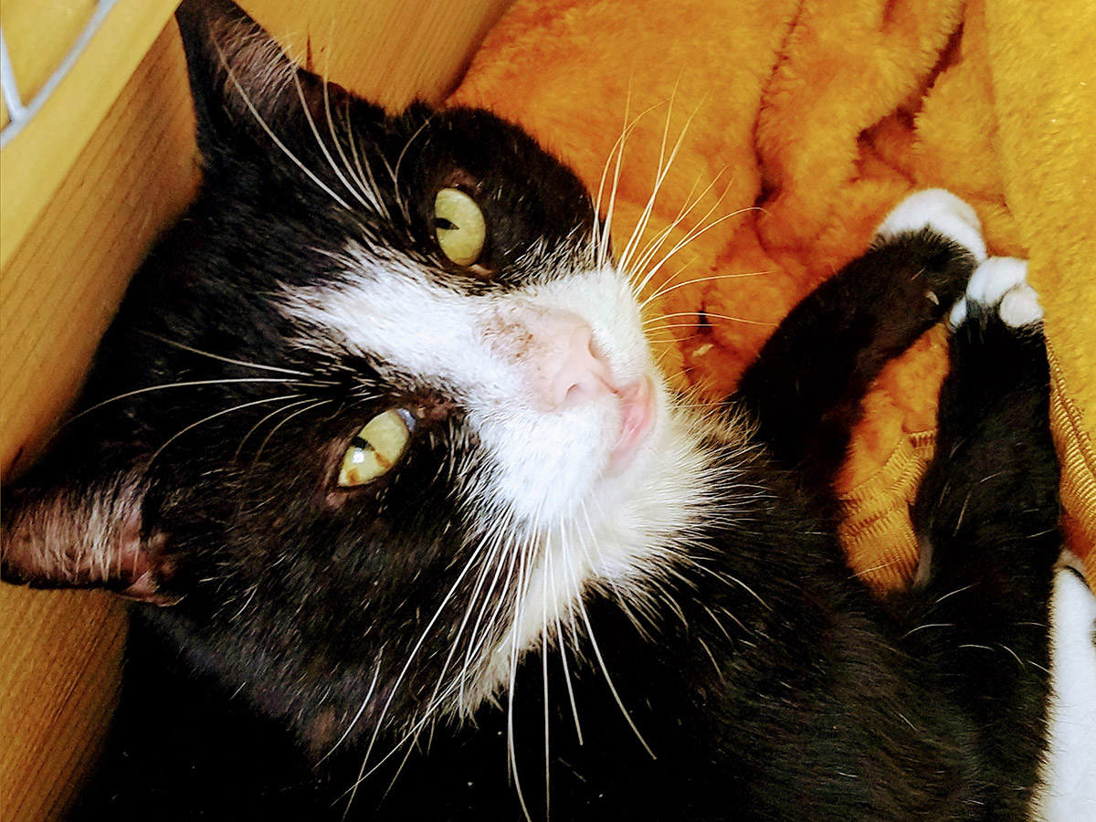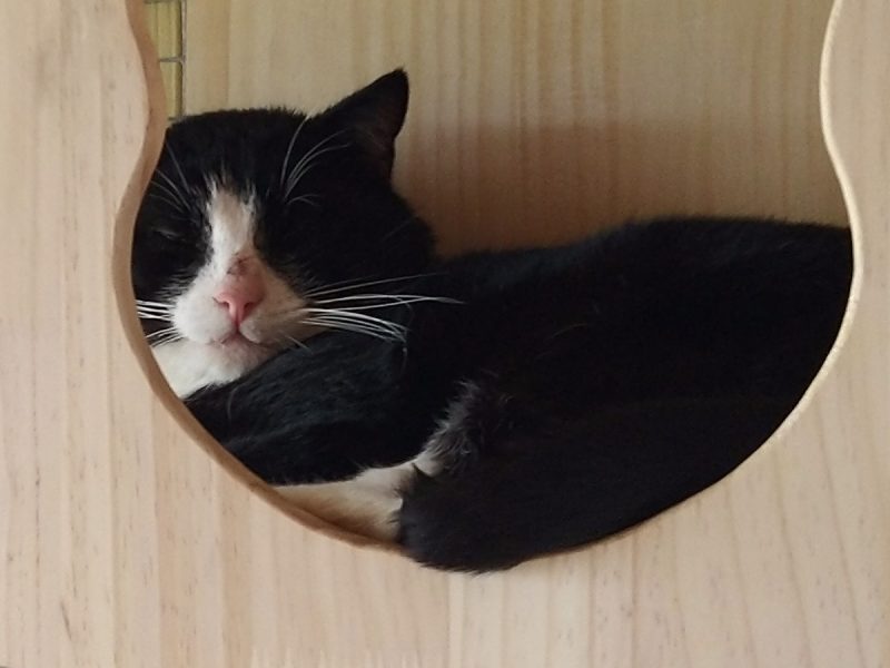Timmy is a beautiful black and white boy, he is a big boy but loves nothing more than to curl up in the smallest high bed he can find!! He is very loving and affectionate and loves dreamies.