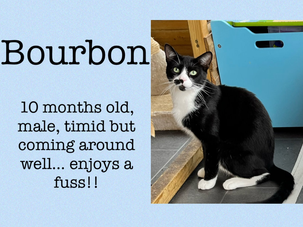 Bourbon, found in a park abandoned as a young kitten, Bourbon will allow you to give him a fuss, but is unsure of new people. Once he gets to know you he soon comes out of his shell. Bourbon loves a comfy, fluffy soft bed so he can roll around and show you his stomach.