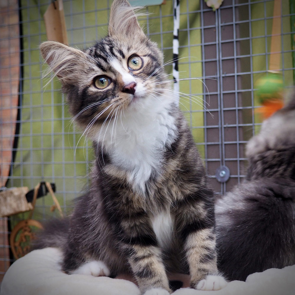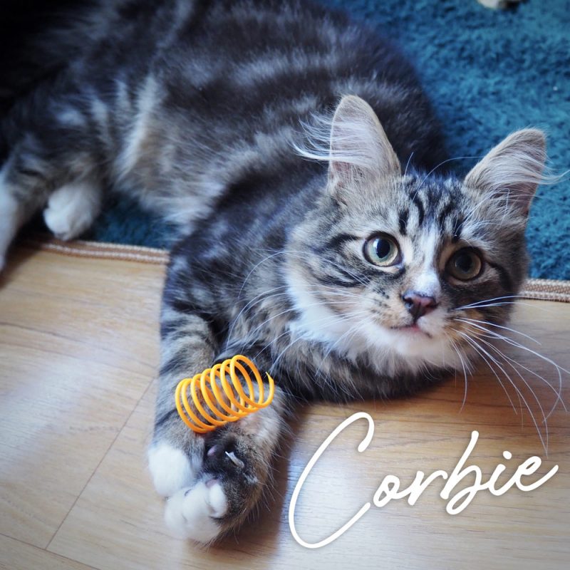 Corbie is an amazing kitten, with a big personality, he s very affectionate, confident & playful. He loves other cats & will be fine to live with children of all ages. He currently hasn’t been tested with dogs.