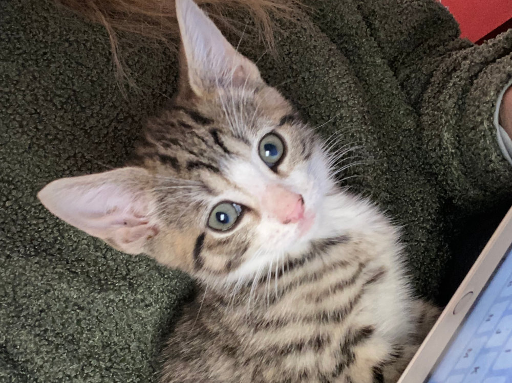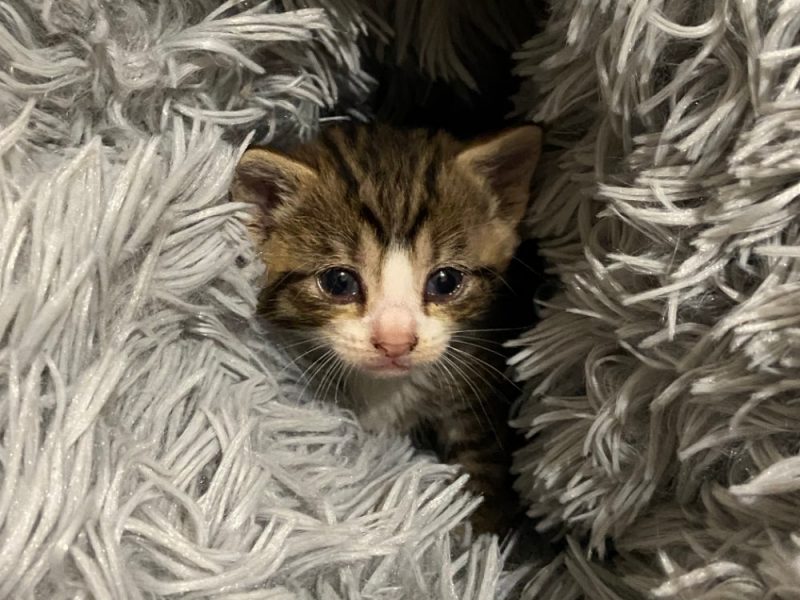 Such a handsome chap, had an awful start in life being found in someone’s garden in Birmingham around 3 weeks of age with his siblings and mom. Crumble is your typical playful kitten with the added bonus that he adores a lap to get comfortable on. Sweet little purr machine with beautiful markings.