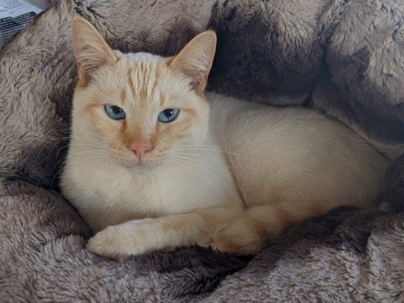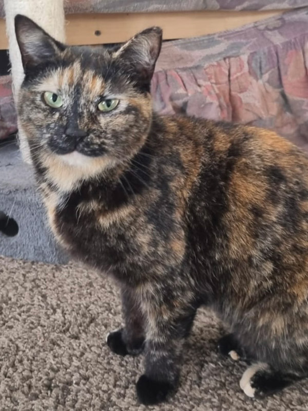 Initially shy, Edgar came out of his shell very quickly and is now an absolute charmer. He loves a fuss and is a sociable cat with humans and other cats. Pie is far more reserved, and it’s taken us a few months for Pie to actively seek a fuss and want to be around humans. But hey, we got there!! We expect them both to be timid when they arrive at their new home, but Edgar will learn to love you quite quickly, Pie will watch closely and definitely follow her brother!