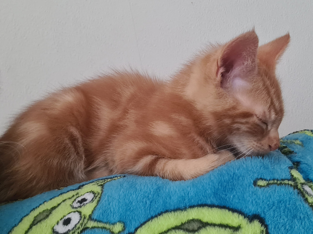 Maple loves her food and is happy to curl up next to you to snooze.