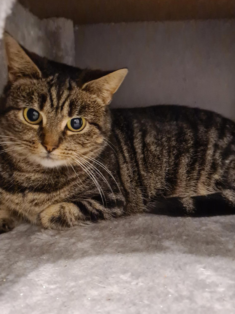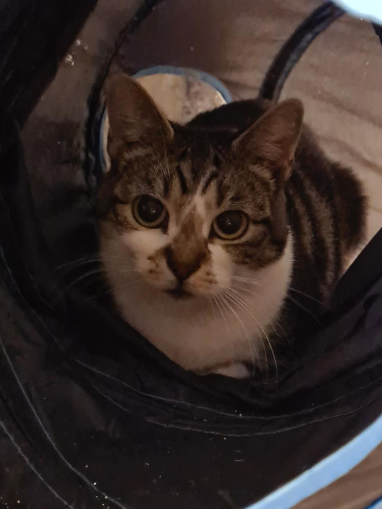 Raya is the braver of the two but is nervous of sudden movements, Sabrina likes to stay on her cat tree out the way and observe you from there, she does like her treats however and will happily lick lick-e-lix off your finger.