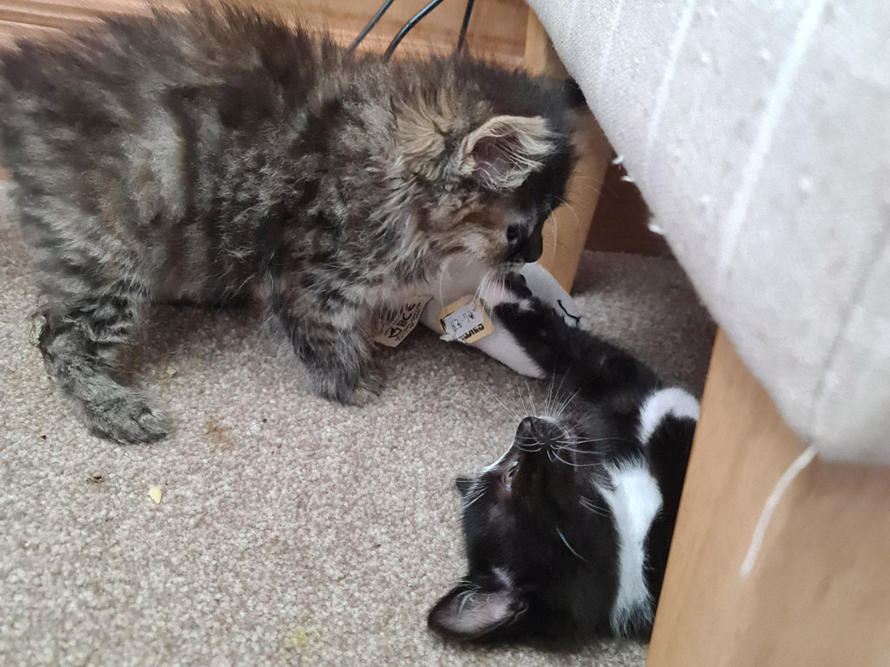 Terra and Whimsey were handed in to a vets clinic with 6 other kittens before they came into foster care.