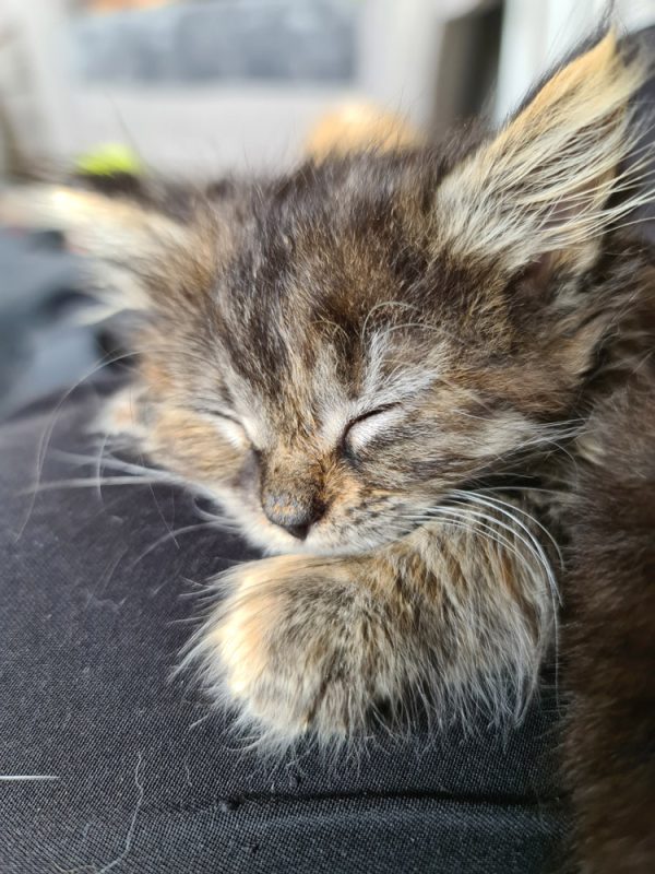 Whimsey is a cheeky ball of fluff. She loves cuddles and food and is very brave. She tells Terra off if he is jumping on her too much.