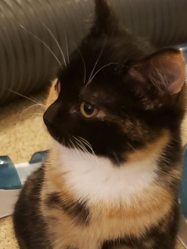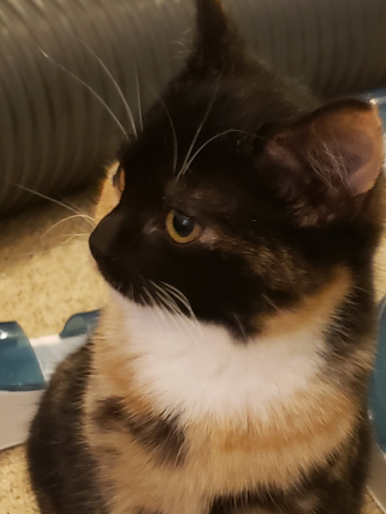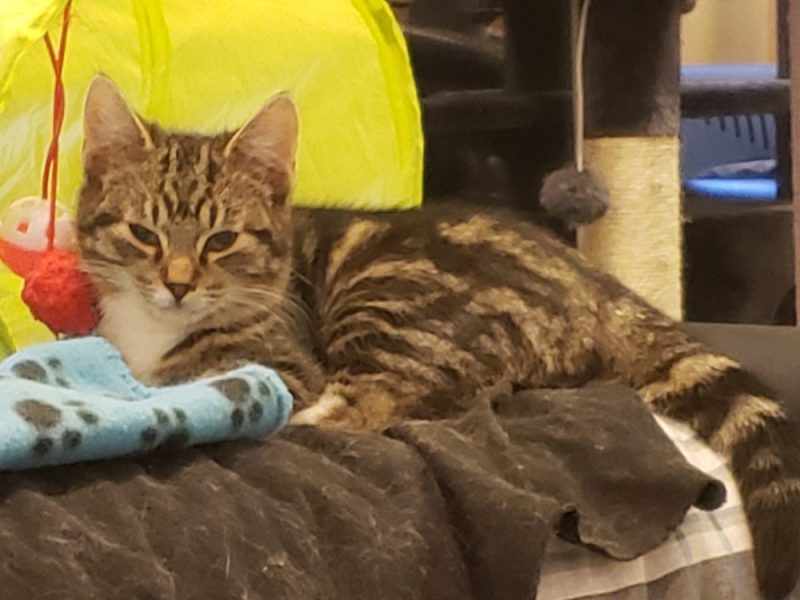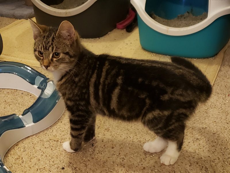 Toggle and Rivet are two out of four siblings that have come into foster care with us. Toggle is a observer and very interested in what is going on, but still keeps her distance. Rivet is very skittish and still wary of trusting people, so will need a lot of patience. They love playing with their other two siblings and our adult cats. They will eat treats from our hands and enjoy playing with string and other toys. They definitely do not want to be picked up at the moment, so unsure how they would be around small children. Be patient with these two quiet kittens.