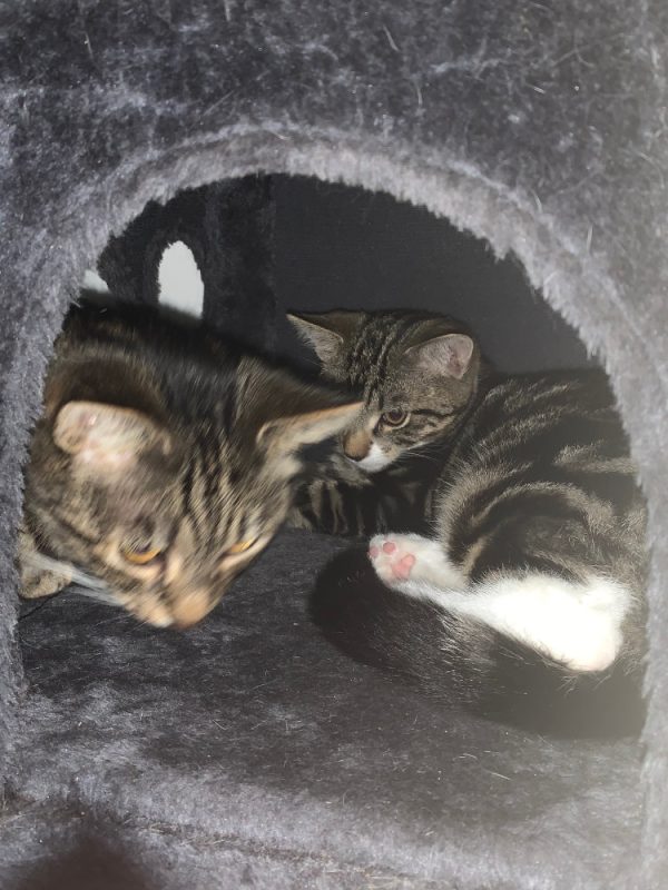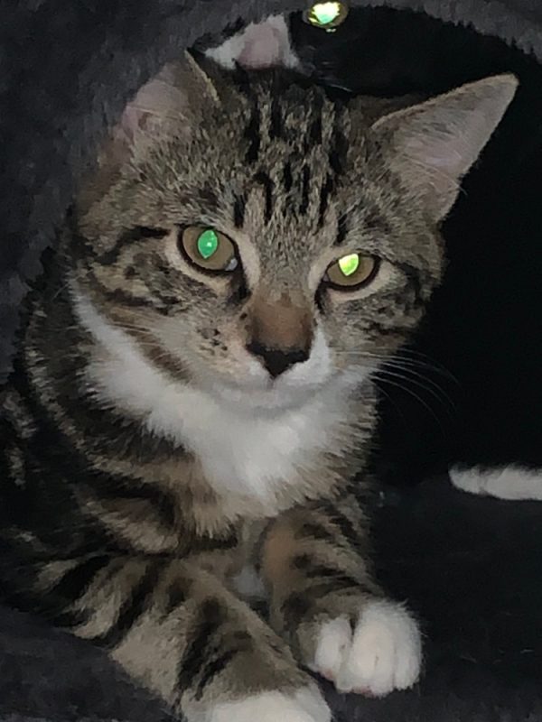 Kai is from a litter of three that was bought in with mom River. The kittens were extremely timid and most definitely feral. Kai has a lovely cute face and is the mischievous one of his litter. He is very playful and will now take dreamies, which he loves, from my hand. They live presently with mom and 7 other cats and have no issue with any of them so could be paired with and existing cat but preferably with Mom River. Kai loves watching the birds outside which include my chickens but equally is fascinated by YouTube videos. He truly wants to play every second his eyes are open. He will be endless days of fun if you open your heart to this little munchkin. He will be neutered at 6 months if still with us middle of March 2023.