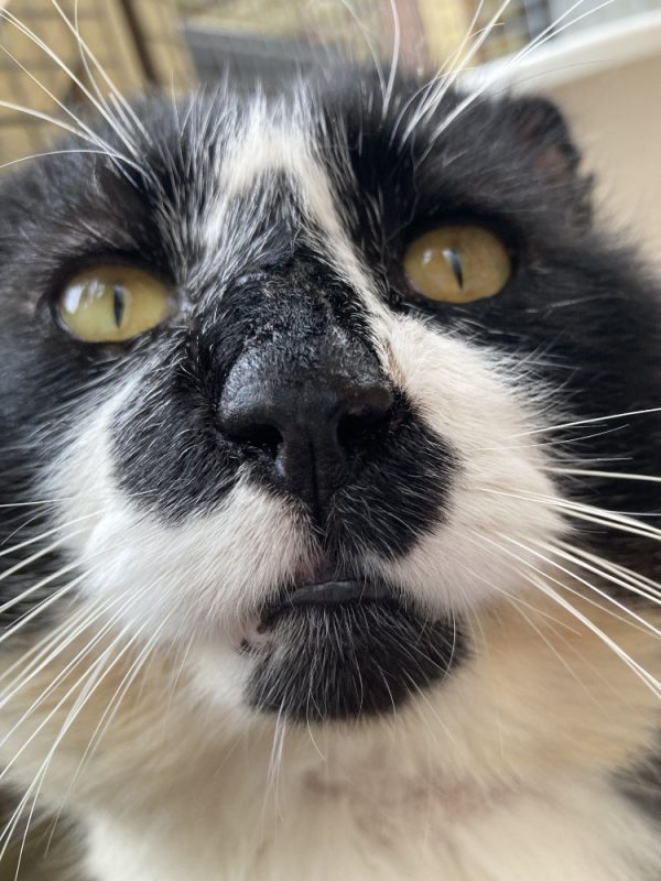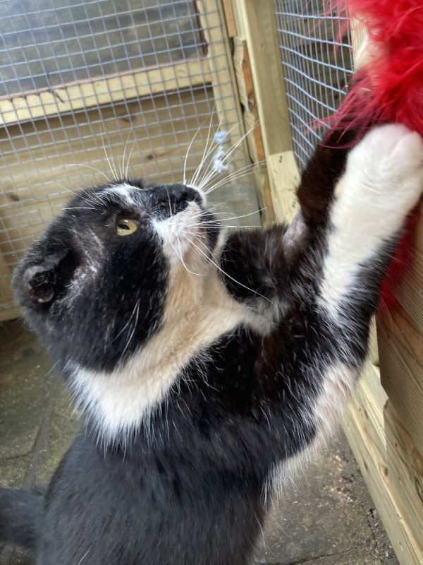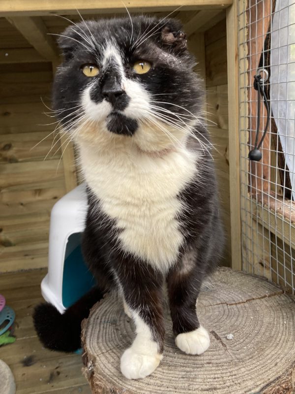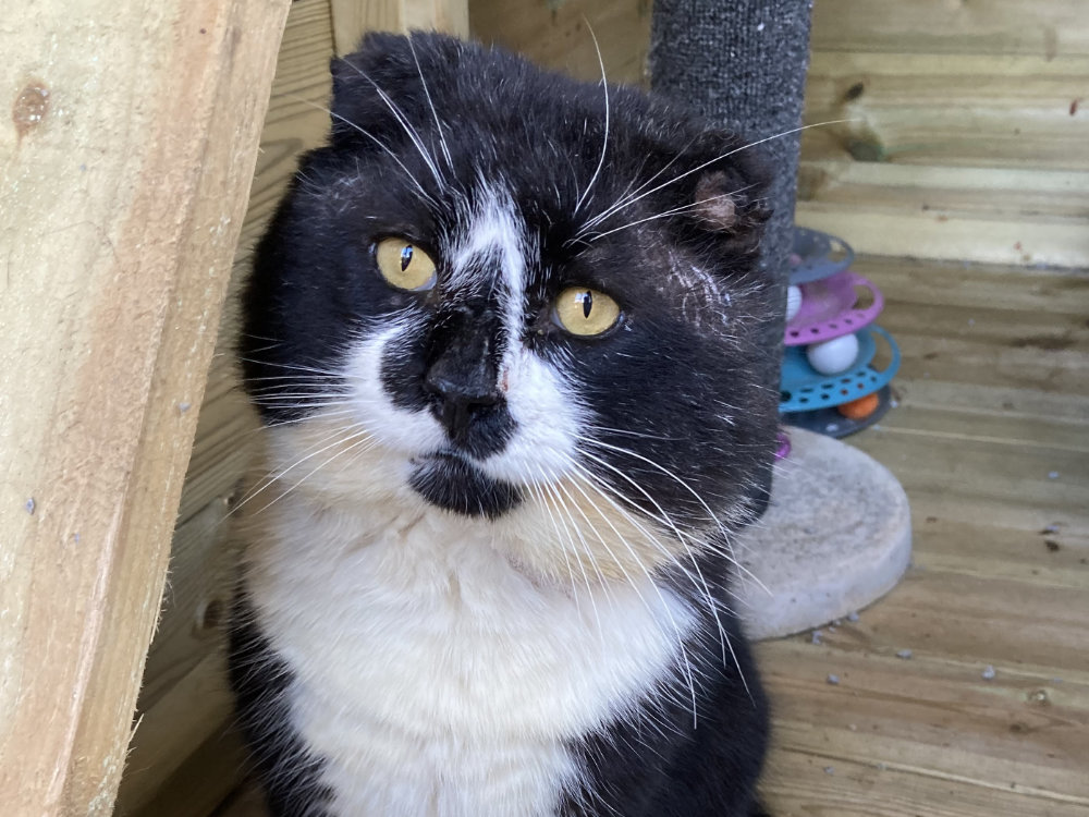 He is FIV+ so will need to be an indoor pet (ideally with a catio or cat proofed garden as he loves the feel of the sun on his whiskers). He is a very placid boy who is not bothered by other cats, so should be fine with another friendly fur-pal; or as an only pet. His gentle nature means he would also be fine with sensible children.