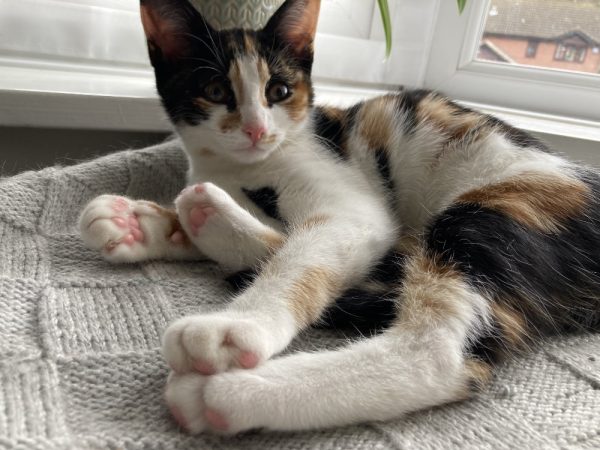 A real sweetheart – would be okay with another very laid back friendly cat, but only one ideally. More than one, she gets stressed!! No dogs please 🙏