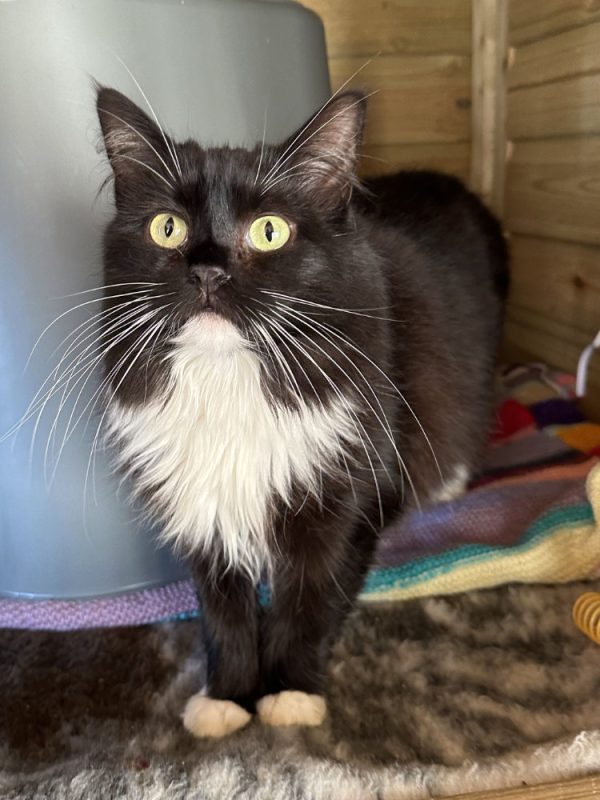 Monkey is a dream! She gets on with other cats really well, she loves a cuddle, loves her toys and she’s a long haired lion! Monkey is also fine with cat tested dogs – what’s not to love? We expect her to be nervous at first, so patience and time is a must! Monkey will repay you by entertaining you as she kicks her toys around, or by giving you cuddles every evening. She really is perfect. Monkey is in full health and ready to find her forever home. A large indoor home wouldn’t be ruled out, but she would like some fresh air. So a home with catio / cat proofed is preferred. Homes well away from busy roads will also be considered. So the question is- who needs a Monkey in their life?