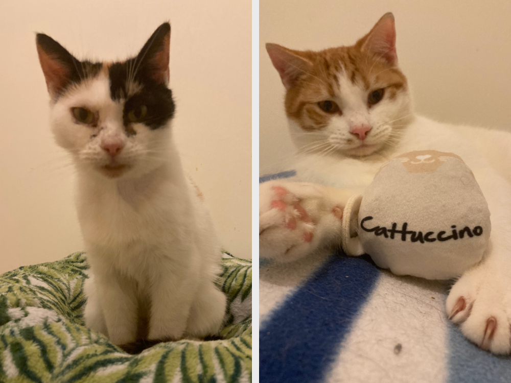 Marshall loves to play and enjoys a stroke. Nancy is a little more reserved at the moment and likes her comfy bed – but comes out to have a little mooch and play when no one is looking.
