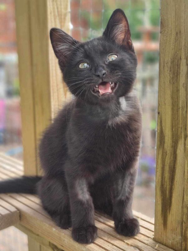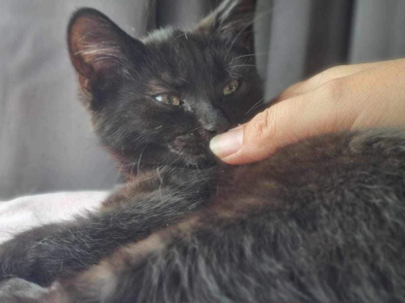 Rhubarb came into rescue almost dead! He fought hard and won the battle and my goodness what a ball of energy he is! He’s super friendly very energetic, has the loudest purr, adores cuddles! He’s just the most perfect mini black panther! Due to how energetic Rhubarb is he will need to be homed with another young playful cat who will keep him company. He adores to play. Safe outdoor access would be amazing for Rhubarb but he would need to be kept indoors for the first 12 months minimum. A spacious indoor home would also be fine for Rhubarb as long as he has lots of company and toys to keep him entertained. He’s in full heath and ready to go, he would make the most wonderful family pet. Please apply if you think you can offer everything this awesome little boy needs and deserves.
