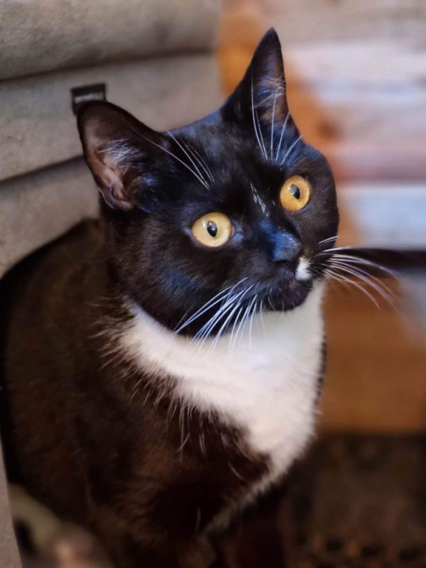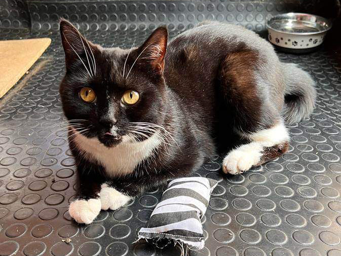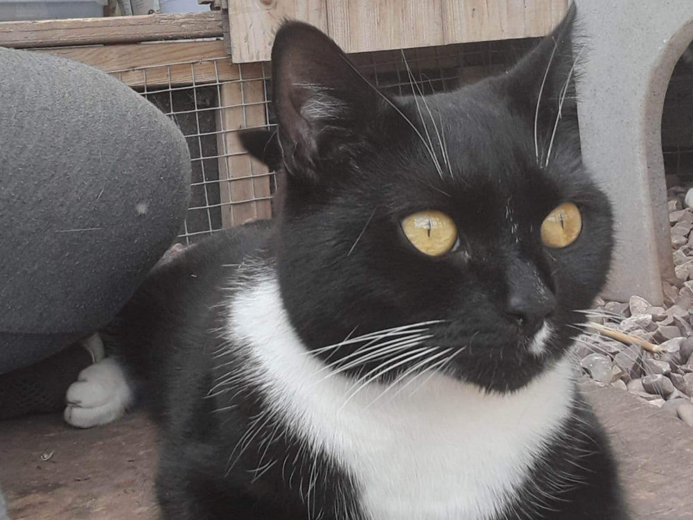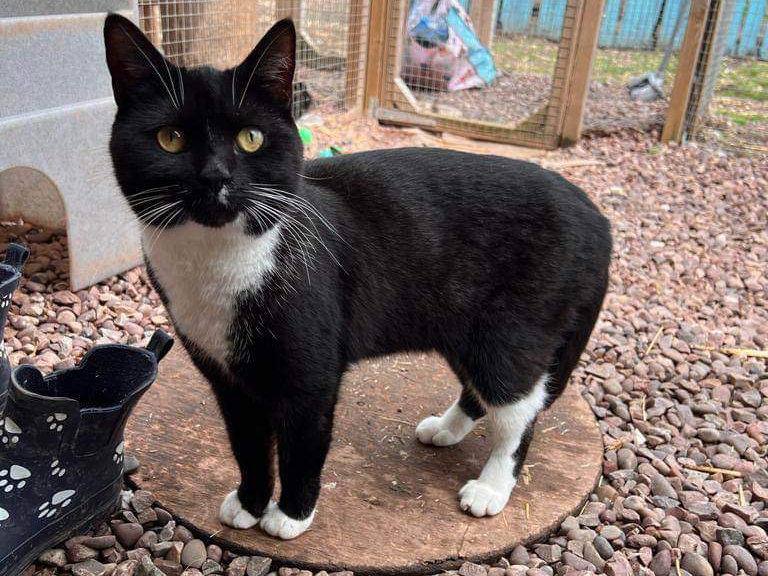 Smokie is a beautiful friendly, cuddly black and white boy who was brought into rescue after being dumped on the side of a road. He was very down and withdrawn when he first came into care but it didn’t take him long to realise he could trust us. He loves to play, adores attention, he even let’s us pick him up. Dreamies and felix goodies are definitely his favourite treats, oh and chicken! Smokie gets on great with other friendly cats and has shown no signs of aggression towards them or us. He really enjoys sitting in his catio watching all of the farm animals so safe outdoor access is a must. He will need a home well away from busy roads (He will need to be kept indoors for the first 6 MONTHS MINIMUM) or a catio/pet proof garden would be fantastic. We expect Smokie to be nervous at first but with patience and a little bit of time to trust you he will be your best friend forever. If you could offer this fabulous boy everything he needs and deserves please apply.