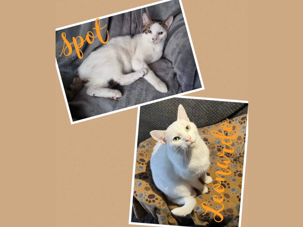 Spot is tabby&white (jubilee born baby) and is the largest of his litter – at only 6 months old, he is absolutely huge! His mother came to us as one of two abandoned stray sisters. I’m still in disbelief Leonardo came in as a stray and remained unclaimed – we believe he is Spot’s uncle – he came along in the same area as Spot’s mum and has a lot of similarities with the litters. They are both the sweetest boys, well used to being handled by children as young as 5. Leo has the most beautiful mesmerising eyes which make him look like he’s always deep in thought. They’re both very calm, love to play, confident, loving and just perfect in every way. Both are extremely cuddly yet very docile and very used to human company. Leo has had a taste for the outdoor life and I think he would be happiest being able to have access outdoors – he has been fine on a harness in the garden. Aside from this aspect, they would suit any home.