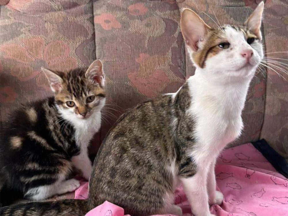 What a pair and a dream pair at that! Jasper was going to be put to sleep by a larger organisation simply because he had conjunctivitis and they had no where to put him. So we raced to get him safe. Tulip was found all alone as a stray baby, her brother had unfortunately died after falling out of the tree they were hiding in. Jasper and Tulip became extremely close in care so are now looking for their forever home together! Jasper has some scarring on his eye from conjunctivitis as a baby but it doesn’t affect him at all and never will. Apart from that he is in full heath! Tulip was starved when she came in, her glucose levels were so so low. Her tongue was super ulcerated from a virus but again she recovered really well and is now in full health. Neither of them have any health issues and love nothing more than to run around like nutters at full speed all day long. Then they love to cuddle up on their electric heatpad and snooze until they get peckish. They both eat really well and are an absolute joy to be around…and so so funny to watch their antics! They adore cuddles, will be fine with calm children and are fine with a large indoor home or catio/ cat proof garden even better. Homes away from busy roads also fine but will need to be kept indoors until 12 months of age. They are fine with cat tested dogs too and adore other cats! They really are the most perfect pair. Please someone offer them their forever home!