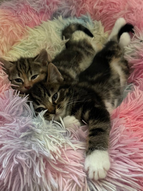 Honey is an absolute sweetheart full of fun energy and affection. She was found with her mum and brother abandoned in a garden. She is confident and loves exploring the house carefully watched by Harvey her much larger brother whom she adores and is bonded to.