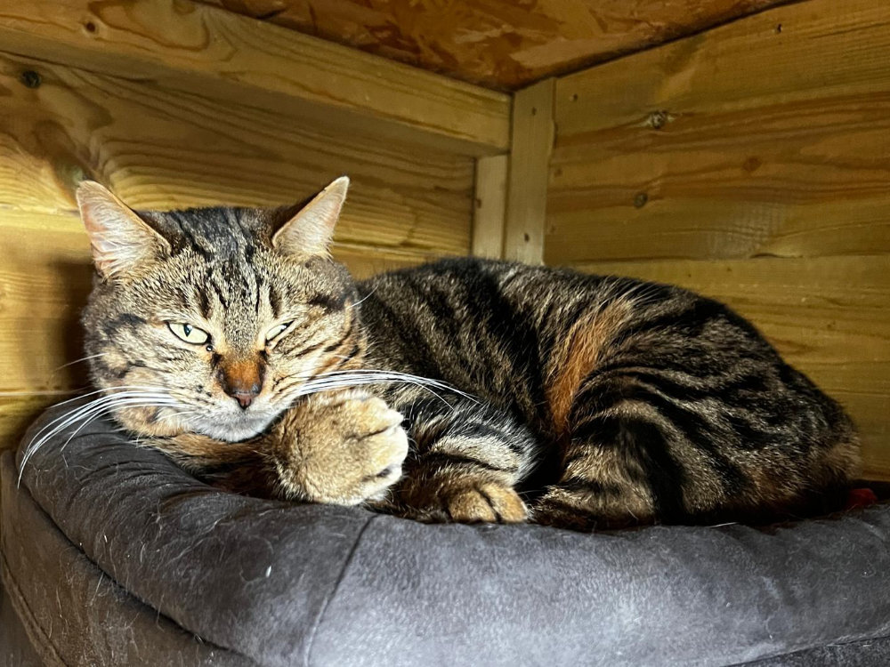 In 2023, I finally came into rescue which was a safe place after a very hard life outdoors. I arrived with my daughter Tulip, and although I’m so happy she’s found her forever home, I’m still waiting for mine.