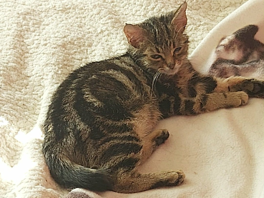 Haze was found all alone in a country lane at just 10 weeks of age – he was anaemic and full of skin lesions so was in and out of the vets for the first few weeks but has grown into a gorgeous young boy.