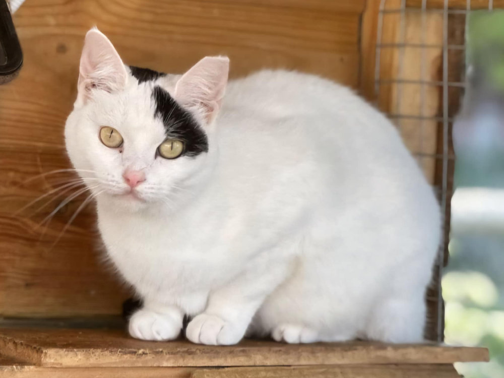 Maggie is a shy little girl who has been overlooked, she loves other cats you’ll often find her tucked up beside them, especially one of her friends.