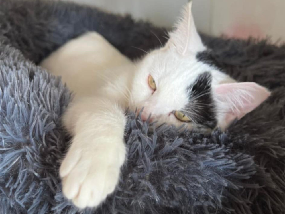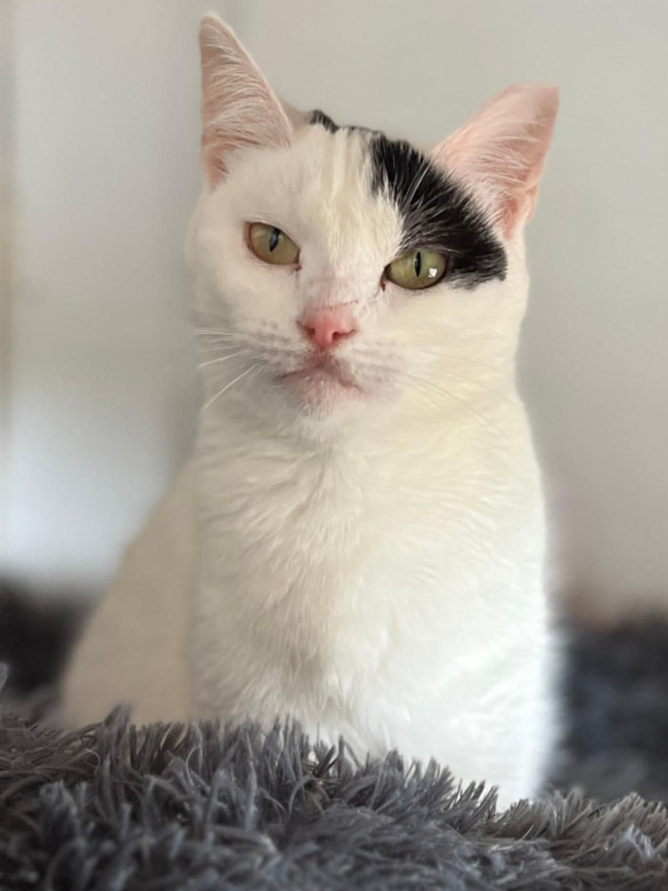 Maggie is a shy little girl who has been overlooked, she loves other cats you’ll often find her tucked up beside them, especially one of her friends.