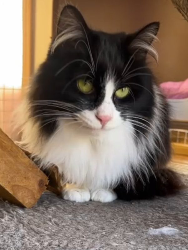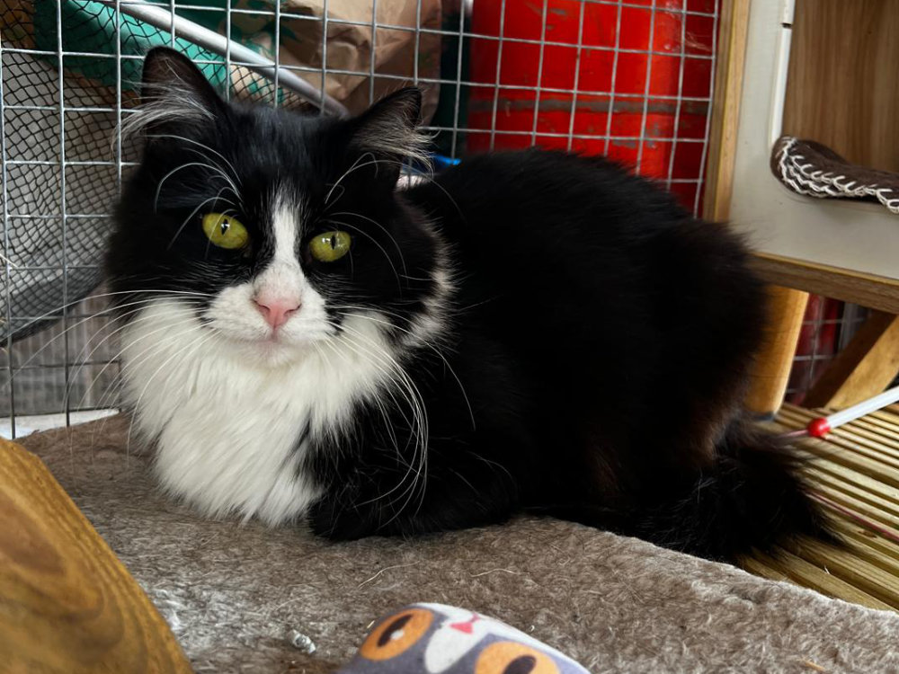 I’m 6 years old and I once lived in the Birmingham area. I came into rescue in April 2023 with my friends Oreo and Tasha. When I first arrived, I was very timid and spent a lot of time hiding while I figured things out. The world felt a bit scary back then.