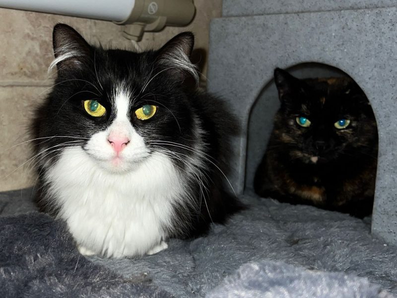 I’m still a cautious and shy girl, but I’m making lovely progress. With a patient, calm and loving home, I know I would continue to grow in confidence. I like to play with my catnip mice and I’ve been seen grooming and cuddling with Tasha, which shows how much I value feline friends.