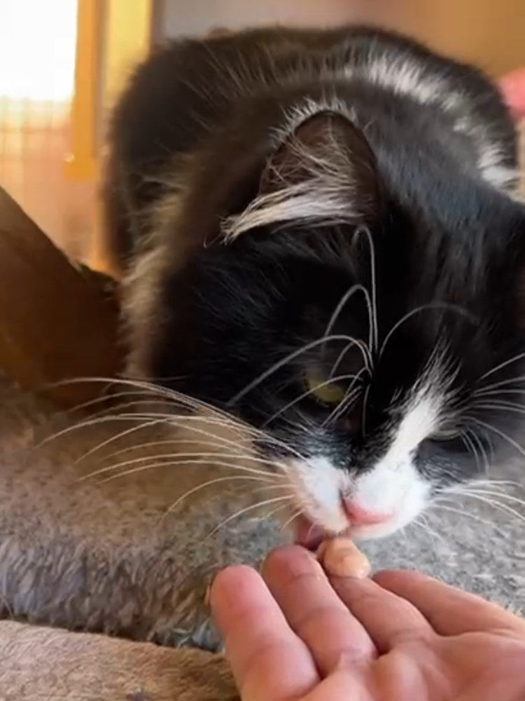 Recently, I’ve started to feel braver. If I trust the adult looking after me, I’ll come out to say hello — especially if there’s chicken involved (it’s my absolute favourite!). I also really enjoy Lick-e-Lix treats. They’ve helped me learn that good things happen when I take small, brave steps.