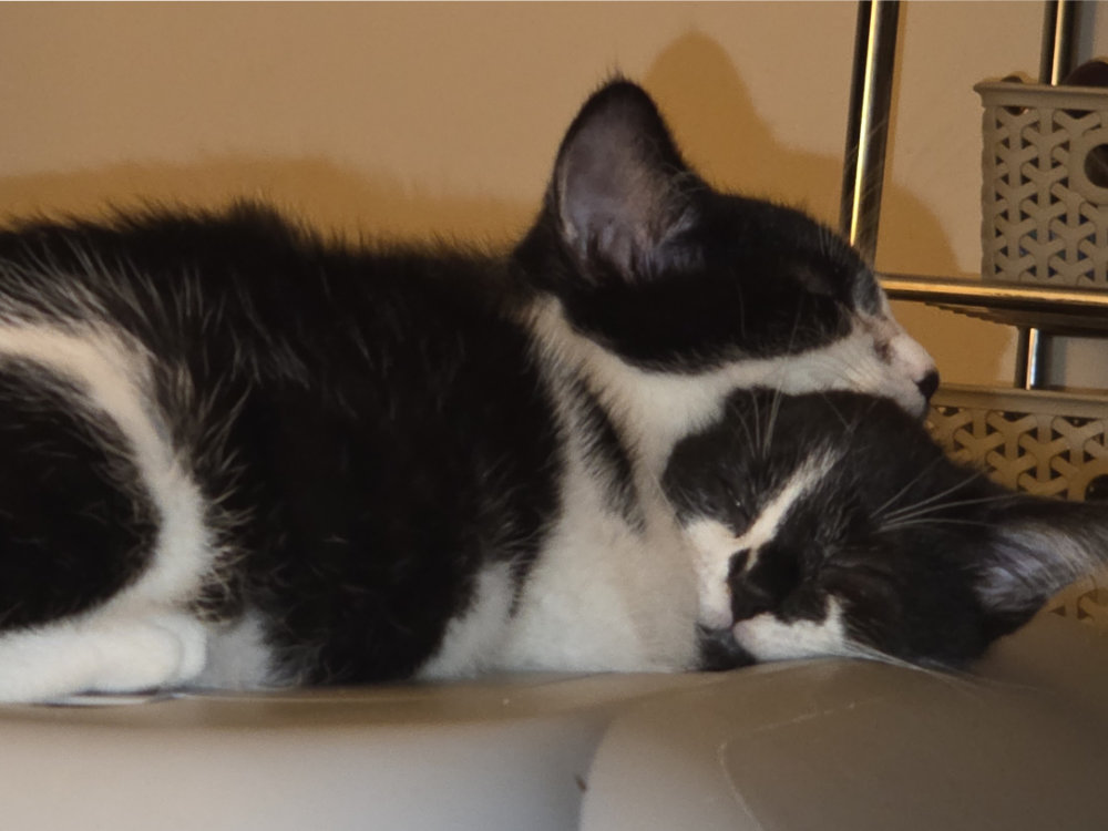 They have both taken to domestic life amazingly, and have become little fuss pots! They’re both so sweet and love to snuggle up in bed, when they’re not chasing eachother round the house, and they are so ready to steal your heart (and food).