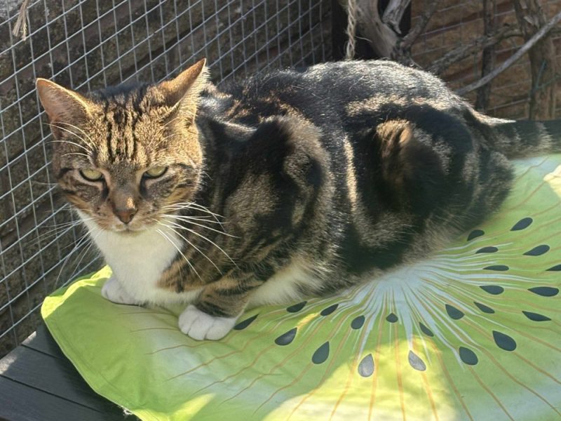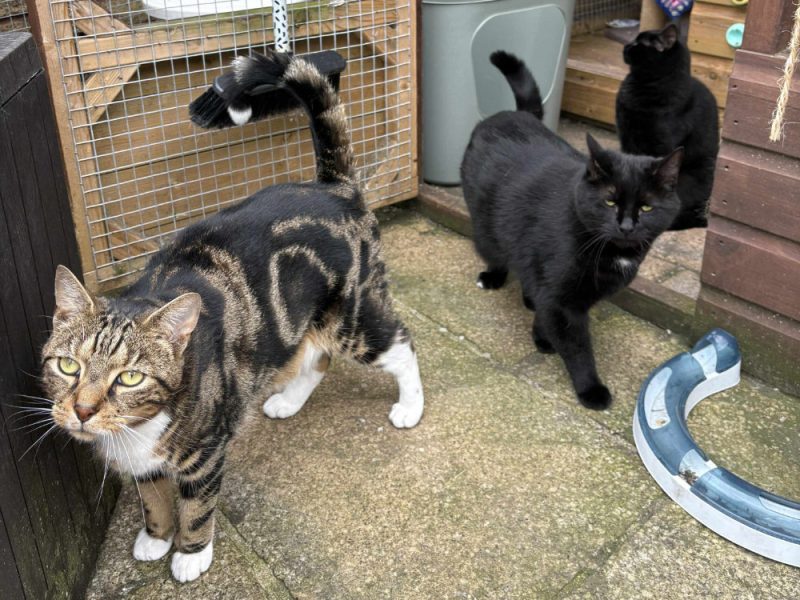 TJ is a big boy with a massive personality. A bit like the lion from the Wizard of Oz, he’s full of bravado but is very nervous underneath the sometimes feisty exterior. He loves to play with laser pens and feathery toys, when he is not trying to steal his brothers food!